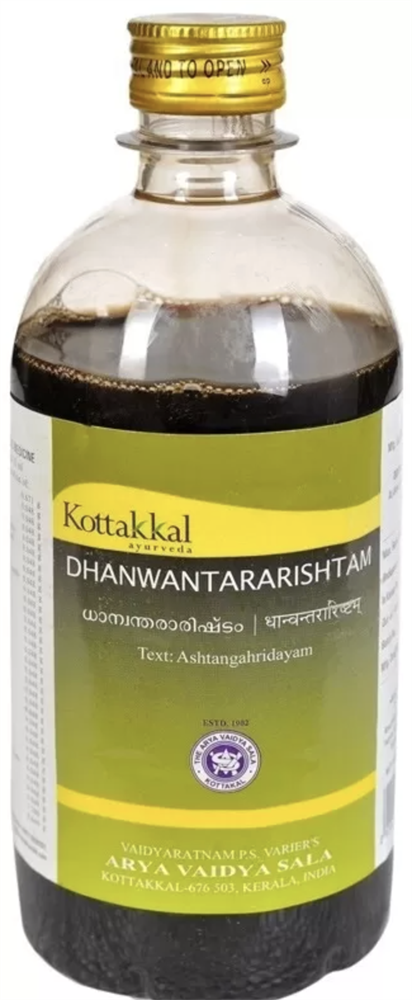 Dhanwantararishtam — классический аюрведический ариштам, приготовленный методом длительной ферментации богатой смеси трав. Его происхождение восходит к текстам «Бхайшаджья Ратнавали» и «Йогаратнакара», а почитание ведётся как минимум с XI века. Средство связывают с Господом Дханвантари — Дэвом, божественным родоначальником аюрведической медицины, и оно традиционно использовалось для восстановления после несчастных случаев и травм в храмах Кералы. Само название формы выпуска ариштам указывает на ферментированный тоник, сохраняющий силу растений за счёт естественных сахаров. Ферментация создаёт биоактивные органические кислоты, которые улучшают усвоение растительных компонентов и работают как естественный «транспорт» (анупана) фитонутриентов.
