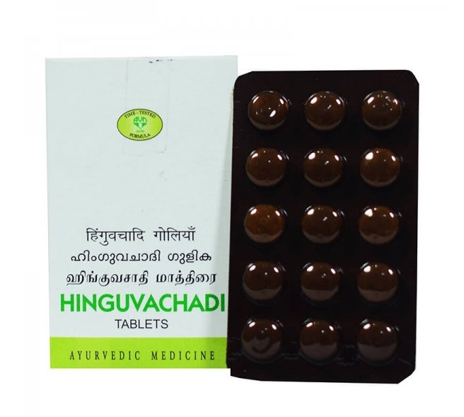 Hinguvachadi является отличным ветрогонным средством, устраняет вздутие живота, колики, cнимает неприятные ощущения в животе, уменьшает проявления метеоризма, диспепсии. Эффективно справляется с болью в спине.