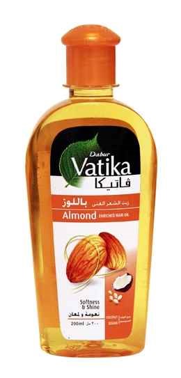 Масло для волос, обогащённое миндалем, Dabur Vatika содержит питательные экстракты миндаля, кунжута и кокосового масла.