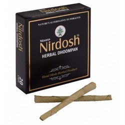 Эти сигареты не содержат табак, они состоят только из полезных, лечебных трав, завёрнутых в форме сигариллы в лист эбенового дерева. Так, в состав Нирдош входят: гвоздика, солодка, базилик, индийская корица, куркума, гвоздика и другие растения, собранные в экологически чистых районах Индии.