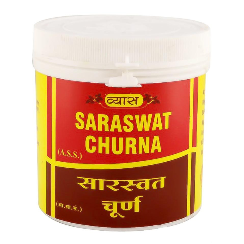 Сарасвати — индуистская богиня, олицетворяющая знание, мудрость, обучение, искусство, музыку, творчество и вдохновение. Эта чурна (травяной порошок) названа в честь богини Сарасвати, поскольку она усиливает те же силы у любого, кто принимает это мощное аюрведическое лекарство. Сарасвати Чурна – это тридошное соединение, хотя оно в основном успокаивает Вата дошу. Он полезен при болезни Альцгеймера, мании, эпилепсии и психических расстройствах. Сарасвати Чурна является тонизирующим средством для нервной системы и надпочечников, а также омолаживающим средством для ума.