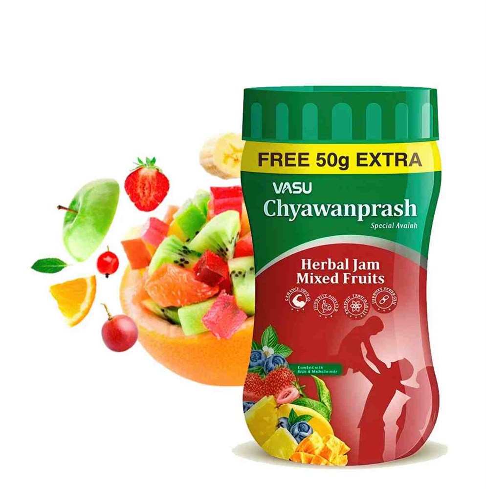 Chyawanprash Mixed Fruit Vasu – это проверенная временем аюрведическая формула, созданная на основе более чем 41 целебной травы. Она укрепляет иммунную систему, помогая организму противостоять повседневным инфекциям – простуде, кашлю, воздействию вирусов, бактерий, пыли и перепадов погоды.