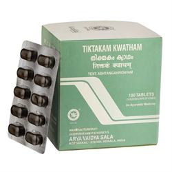 Tiktakam kwatham (Тиктакам Кватхам) Kottakal - эффективный аюрведический фитопрепарат, предназначенный для лечения различных заболеваний кожи, в том числе инфекционных. Представляет собой высококонцентрированный отвар из лекарственных индийских трав в форме таблеток.